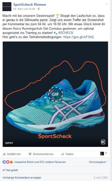 It was quite similar with Sportscheck’s award winning GIF. There a shoe fell from top to bottom again and again. The GIF should be stopped when the shoe is exactly in the outline. And people did it gladly, many times.